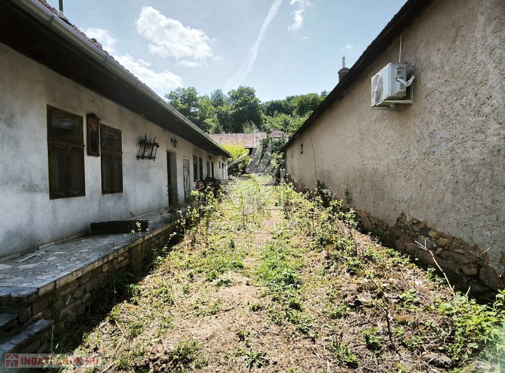 A házhoz tartozó lankás kertrész igazi paradicsom a természet kedvelőinek. Itt található egy régi csűr jellegű épület, amely számos lehetőséget rejt magában, legyen szó tárolásról, műhelyről vagy akár egy hangulatos közösségi térről. Továbbá egy hosszan a föld alá benyúló pince is tartozik az ingatlanhoz, amely ideális hőmérsékletet biztosít borok vagy tartós élelmiszerek tárolására.