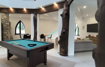 -A földszinti tér hatalmas területen alkalmas szintén a teljes tágabb család fogadására és kényelmes időtöltésére.