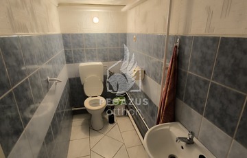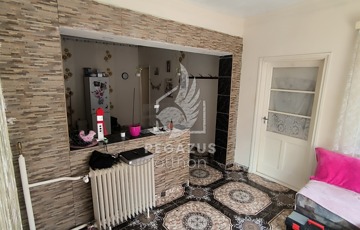 A felső lakószinten egy előszobával egybenyitott, világos konyha, két kényelmes szoba, egy fürdőszoba és egy kamra kapott helyet. A szobák egyikében modern laminált padló, a többi helyiségben pedig praktikus járólap burkolat található.