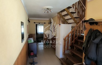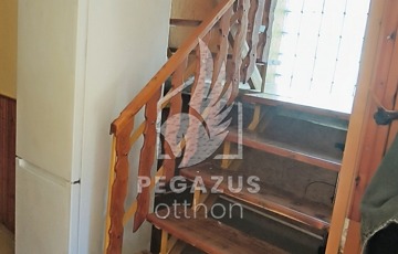 A ház közepén elhelyezkedő, igényesen megmunkált U alakú falépcső vezet fel a felső szintre. Itt egy tágas közlekedő fogad minket, ahonnan három különálló szoba nyílik. Ezek közül az egyikhez erkély is tartozik. Az emeletnek van egy másik különlegessége is: egy külső lépcsőn keresztül közvetlenül le lehet jutni a hátsó kertbe, továbbá mégegy fürdőszoba is rendelkezésre áll.